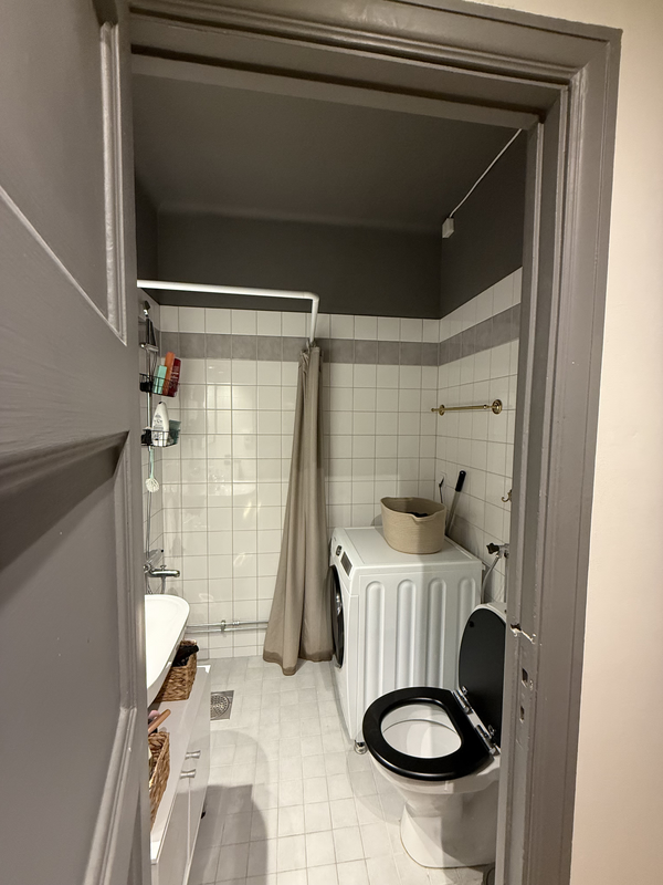 – Badrummet är fräscht och helkaklat med klinkergolv, vattenburen golvvärme och tvättmaskin. Den som vill kan ha tvättmaskin och torktumlare.